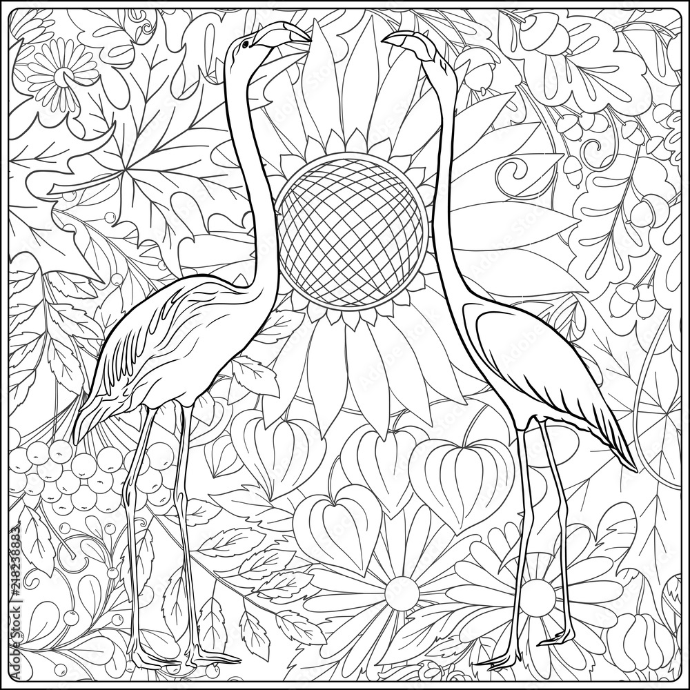 Flamingo In Fantasy Flower Garden Outline Hand Drawing Good For Coloring Page For The Adult Coloring Book Stock Vector Illustration Stock Vector Adobe Stock